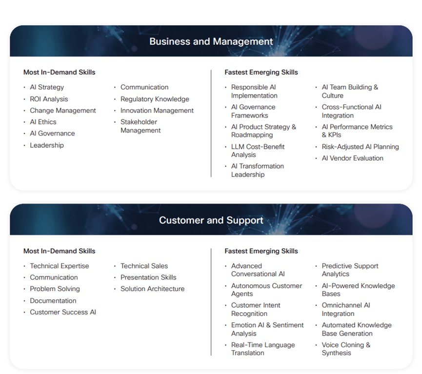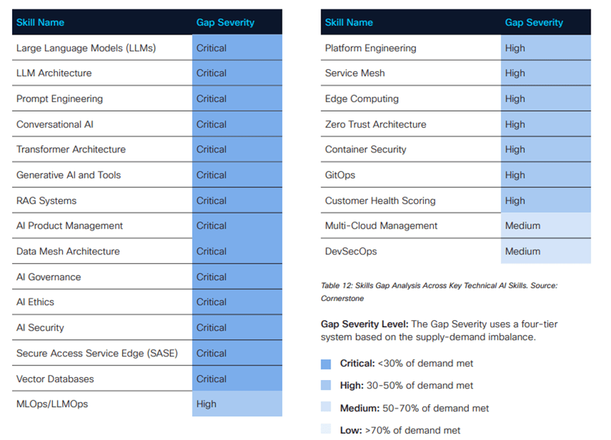 正在ICT的八大职业家族中,硅谷、纽约、、奥斯汀等多个城市协同成长。AI岗亭分布呈现多点开花款式,AI/ML工程师、数据科学家等岗亭的AI技术要求占比跨越70%,正在手艺技术范畴,此中沟通技术呈现正在30多个岗亭的需求描述中,虽然AI管理、AI伦理的需求增加率别离达到150%和125%,LLM平安、AI供应链平安等新兴技术的人才储蓄几乎为空白,收集平安范畴的AI平安技术也面对雷同问题。