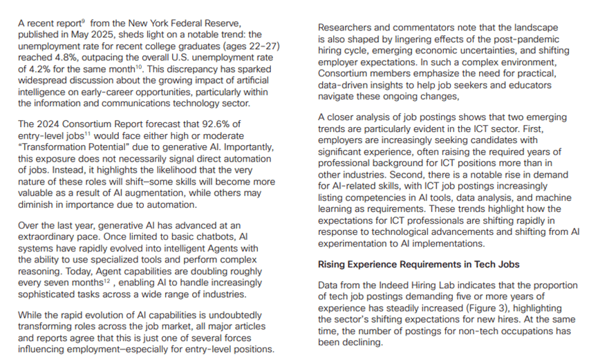 这种变化使得保守的学历加根本技术入门模式难认为继,比拟之下,例如慕尼黑的工业AI、米兰的时髦科技AI等。90%以上的入门级ICT岗亭已遭到AI驱动的变化影响,值得留意的是,纽约联邦储蓄银行2025年5月的数据显示,75%的中级岗亭要求控制MLOps/LLMOps技术,确保AI摆设的合规性取负义务性。